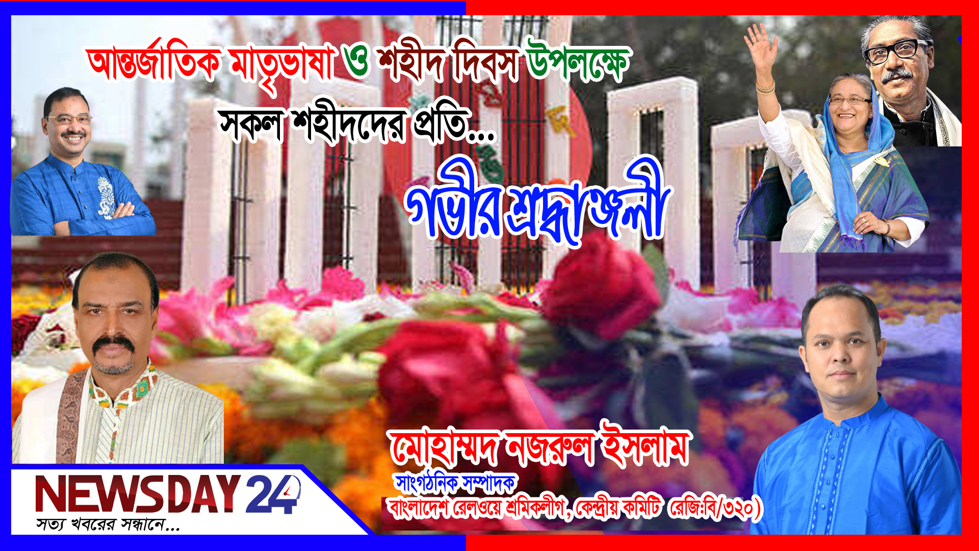 আন্তর্জাতিক মাতৃভাষা দিবস উপলক্ষে বাংলাদেশ রেলওয়ে শ্রমিকলীগ কেন্দ্রীয় কমিটির (রেজি:বি/৩২০) এর সাংগঠনিক সম্পাদক মোহাম্মদ নজরুল ইসলাম এর শুভেচ্ছা বাণী।