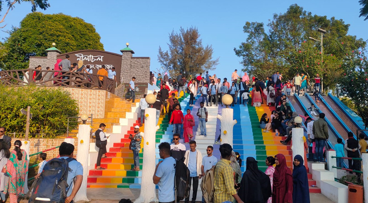 বান্দরবান শহরের আশপাশের জনপ্রিয় পর্যটন স্পটগুলোতে দেখা গেছে পর্যটকদের উপচেপড়া ভিড়। নীলাচল, শৈলপ্রপাত, গোল্ডেন মন্দির এবং মেঘলা পর্যটন কেন্দ্রে ভ্রমণপিপাসুরা দল বেঁধে ঘুরে বেড়াচ্ছেন। খোলা জিপে টিম আকারে কিংবা বন্ধুদের সাথে মোটরবাইকে চেপে ছুটে যাচ্ছেন গন্তব্যের পথে। পাহাড়ের চূড়ায় গোল টেবিলে বসে কেউ আড্ডায় মেতে উঠেছেন, কেউবা প্রকৃতির মনোরম বাতাসে নিজেকে হারিয়ে দিচ্ছেন। চারপাশে অনেকেই পাহাড়ি সৌন্দর্যে মুগ্ধ হয়ে ঘুরে বেড়াচ্ছেন। স্মরণীয় মুহূর্তগুলো ধরে রাখতে দর্শনার্থীরা স্মৃতি হিসেবে ক্যামেরাবন্দি করে রাখছেন এমন দৃশ্য দেখা গেছে।