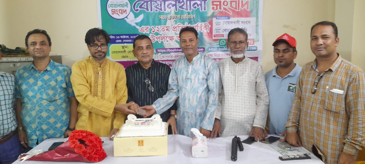 বোয়ালখালী সংবাদ পত্রিকা’র ১২তম প্রতিষ্ঠা বার্ষিকী অনুষ্ঠান কেক কেটে উদযাপন করা হয়েছে।