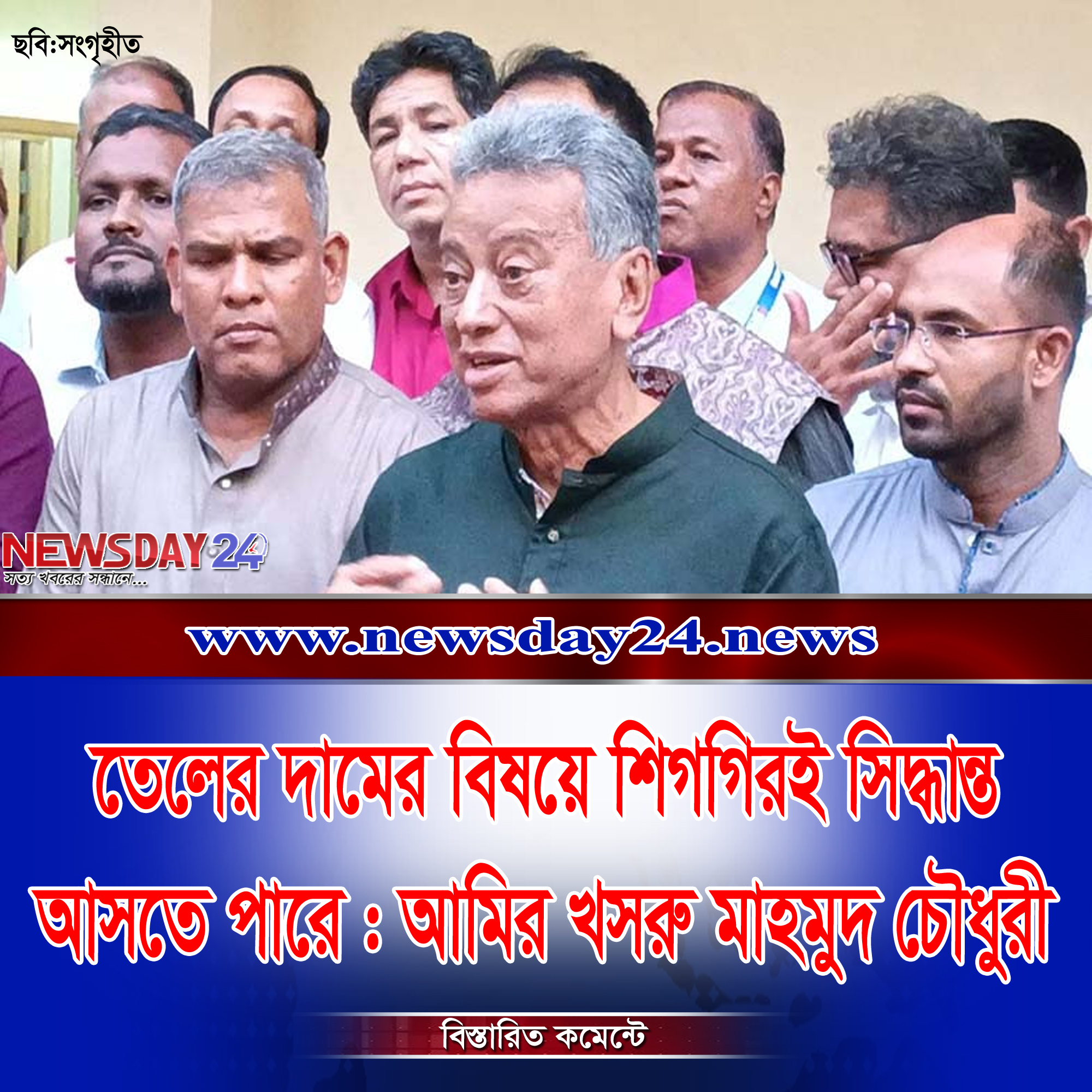 তেলের দামের বিষয়ে শিগগিরই সিদ্ধান্ত আসতে পারে বলে জানালেন অর্থ ও পরিকল্পনা মন্ত্রী আমির খসরু মাহমুদ চৌধুরী। আজ শুক্রবার চিটাগং ইন্ডিপেন্ডেন্ট ইউনিভার্সিটির (সিআইইউ) শিক্ষার্থীদের স্কলারশিপ প্রদান অনুষ্ঠানে এ কথা বলেন তিনি।