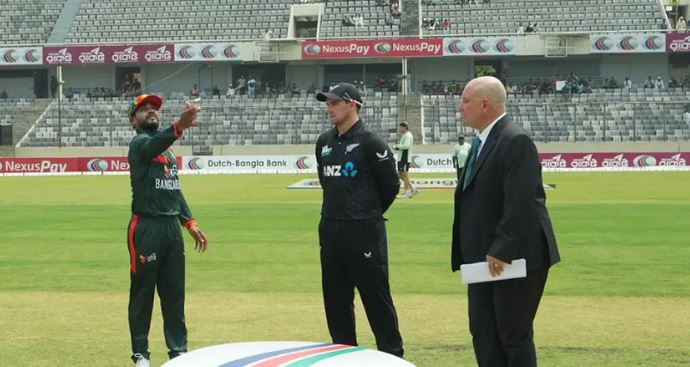 মিরপুর শেরে বাংলা জাতীয় ক্রিকেট স্টেডিয়ামে নিউজিল্যান্ডের বিপক্ষে তিন ম্যাচ সিরিজের দ্বিতীয় ওয়ানডেতে টস হেরে প্রথমে ফিল্ডিংয়ে স্বাগতিক বাংলাদেশ।